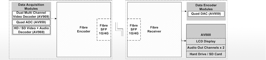 • AV8069 - Decode video formats up-to 1920x1080 and transmit of Fibre.