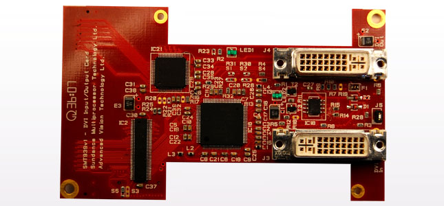 The AV939 is a DVI transceiver module AVXB expansion card. It is capable of receiving a single DVI channel running with a maximum clock frequency of 165MHz. The decoded DVI data stream is organised as a 24bit RGB packet with separate syncs and clock. An onboard EEPROM allows an EDID table to be programmed so that driving hardware can interrogate the DVI input interface. The board also features a DVI encoder which supports a single DVI output interface up-to 165Mhz.